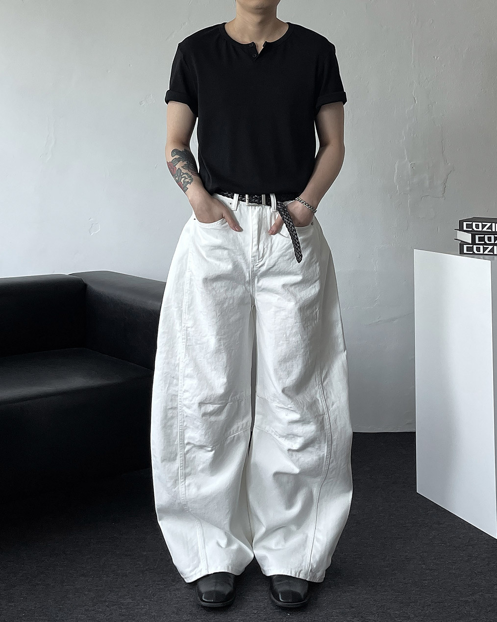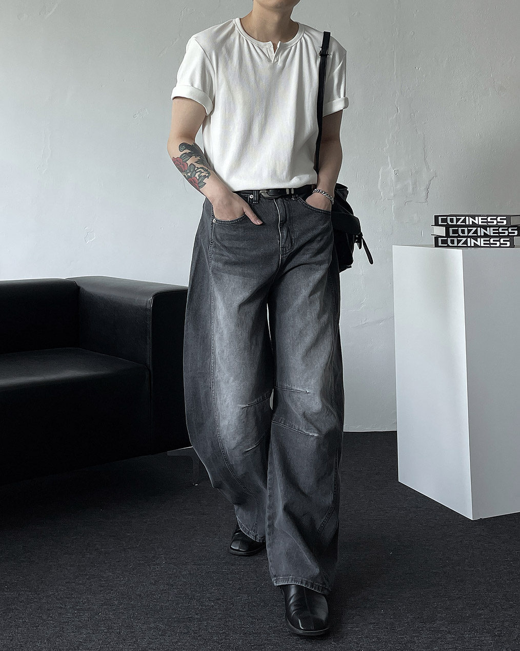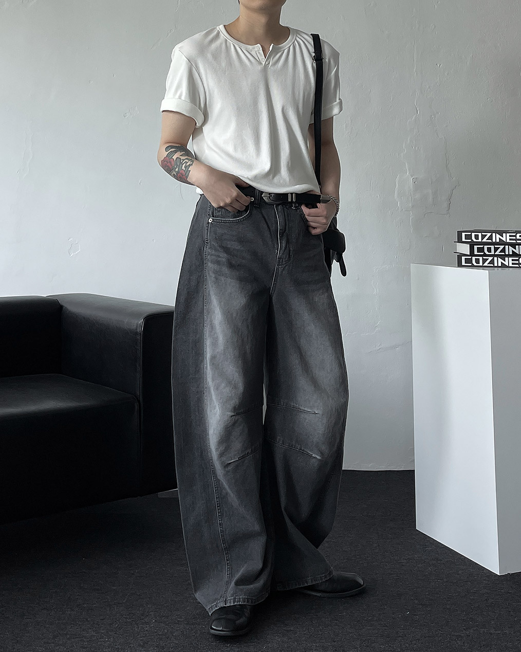 - 세련된 실루엣과 트렌디한 무드를 더한 벌룬 와이드 데님 팬츠