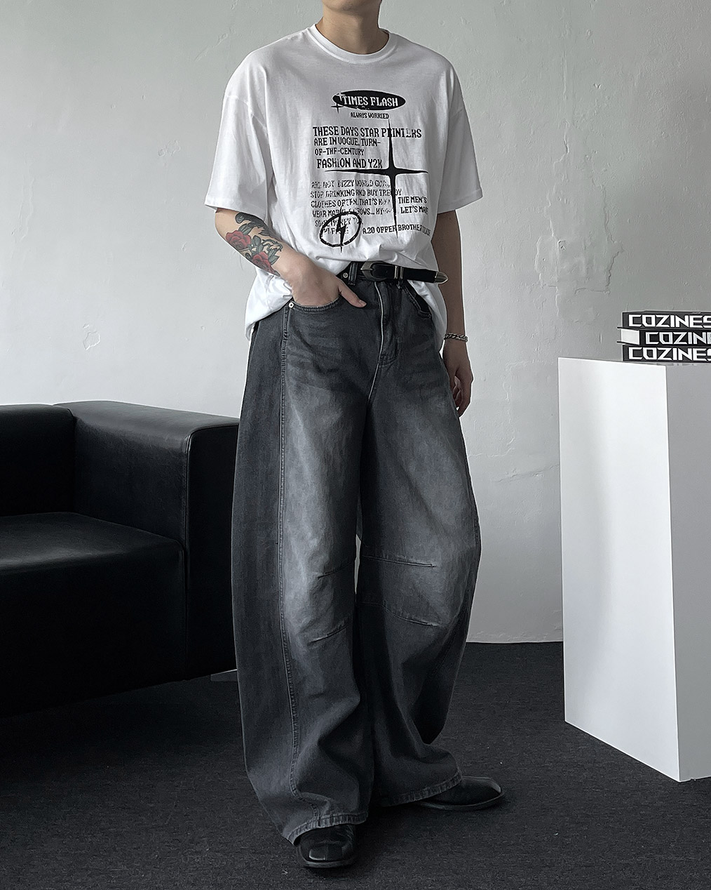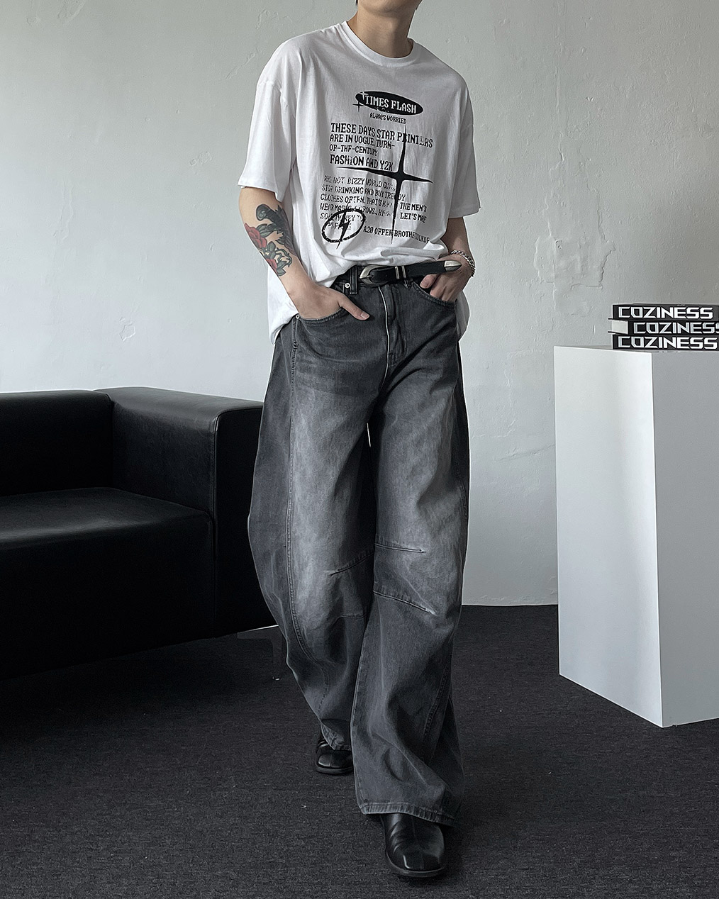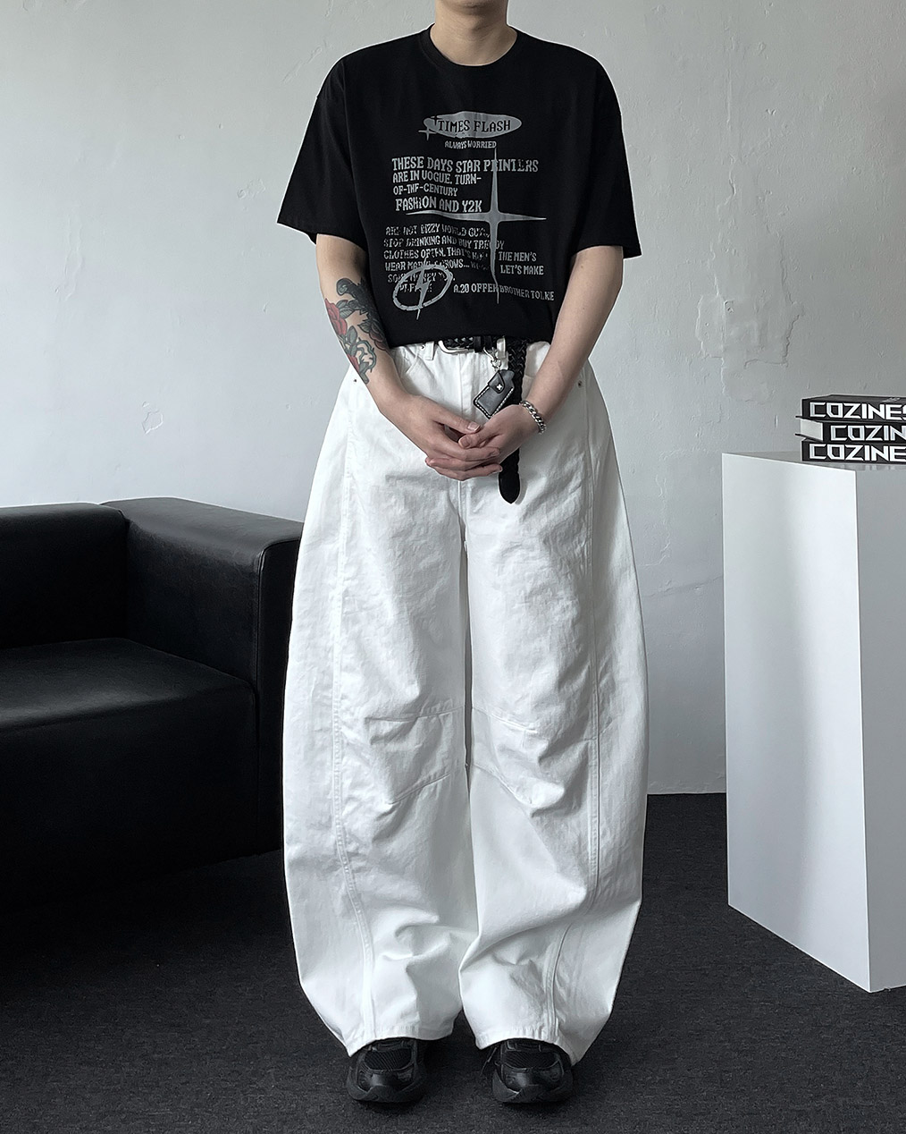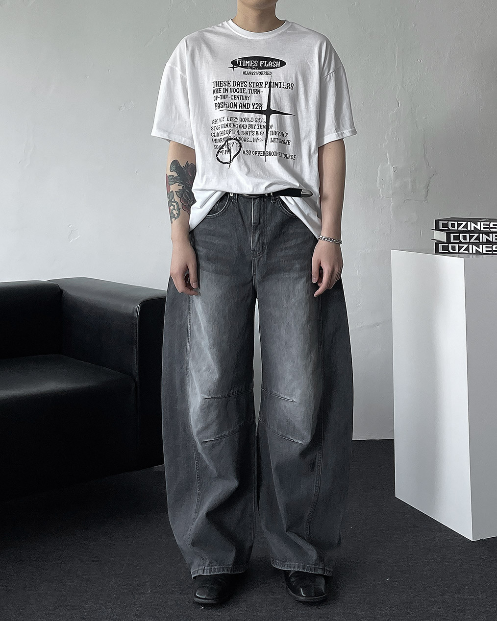 - 세련된 실루엣과 트렌디한 무드를 더한 벌룬 와이드 데님 팬츠
