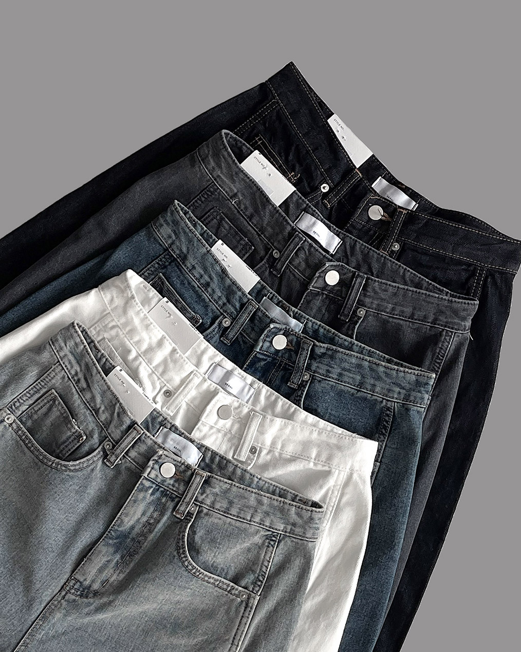 - 화이트, 블랙, 연청, 진청, 생지 등 다양한 컬러로 구성되어 폭넓은 스타일링 가능