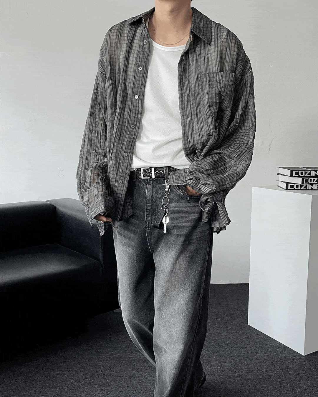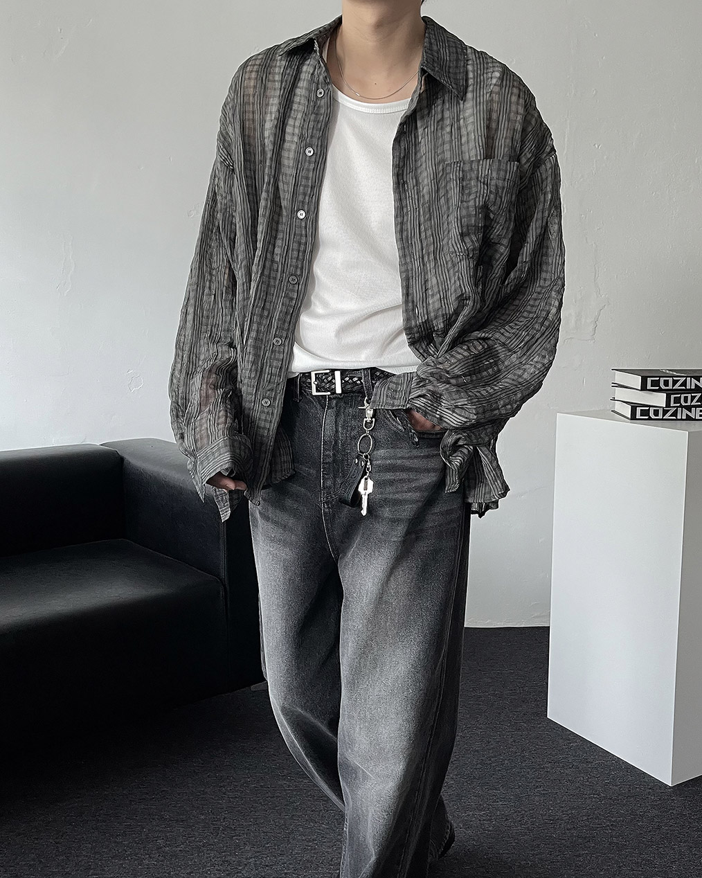 - 얇고 가벼운 소재감의 링클 체크 셔츠