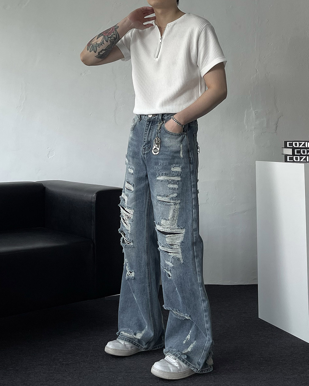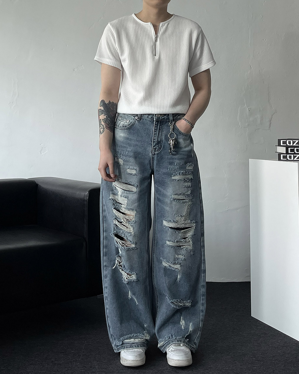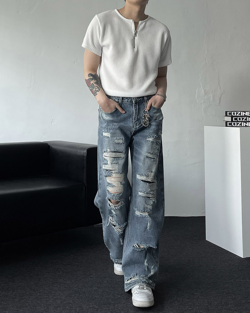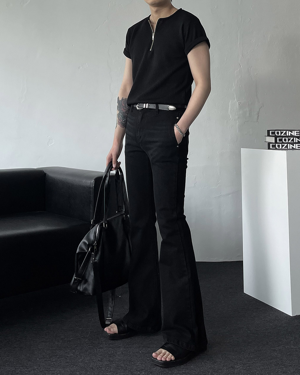 - 트렌디한 무드에 반집업 디테일이 더해진 골지 반팔 티셔츠