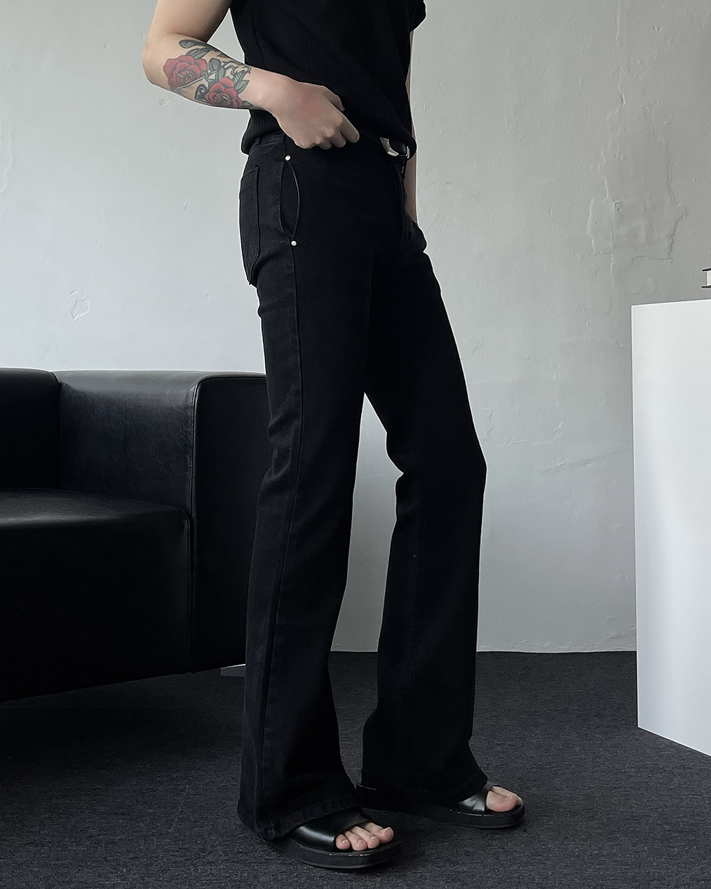 - 매끄럽게 떨어지는 부츠컷 실루엣으로 레그 라인이 길고 슬림 해 보이는 효과
