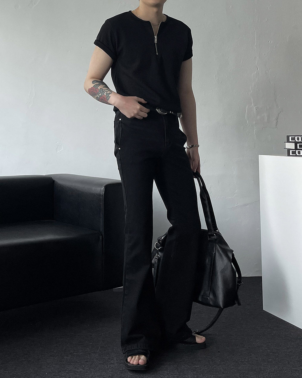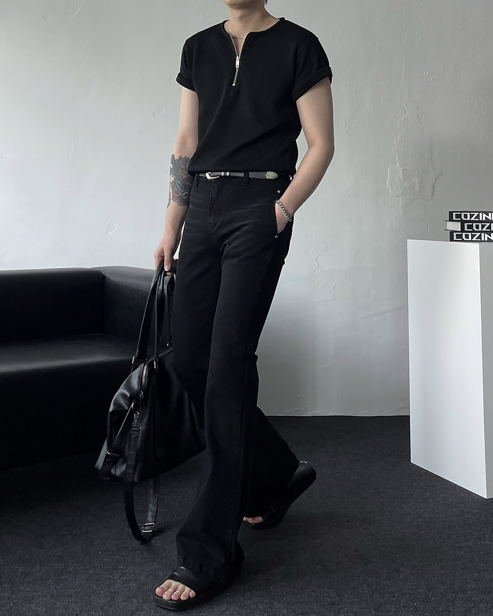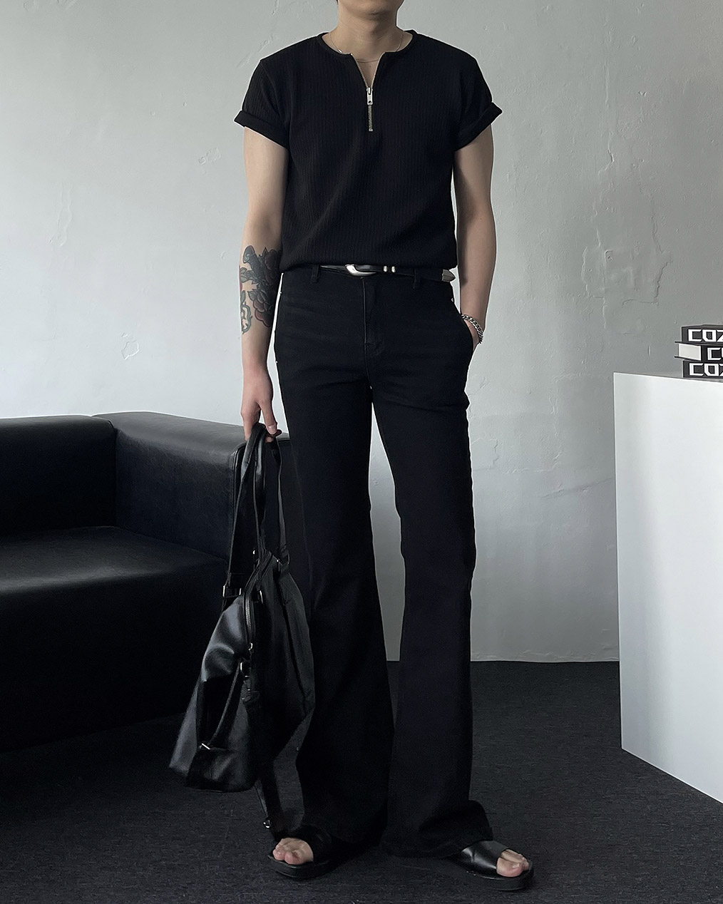 - 심플한 블랙 컬러로 다양한 상의와 매치가 쉬워 미니멀, 스트릿, 시티룩 등 활용도 높음
