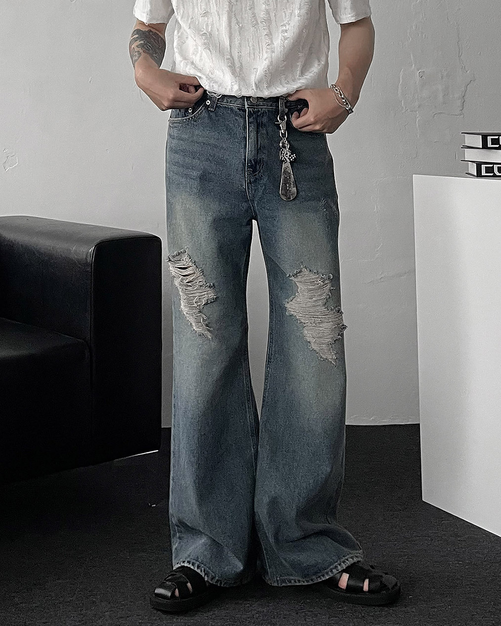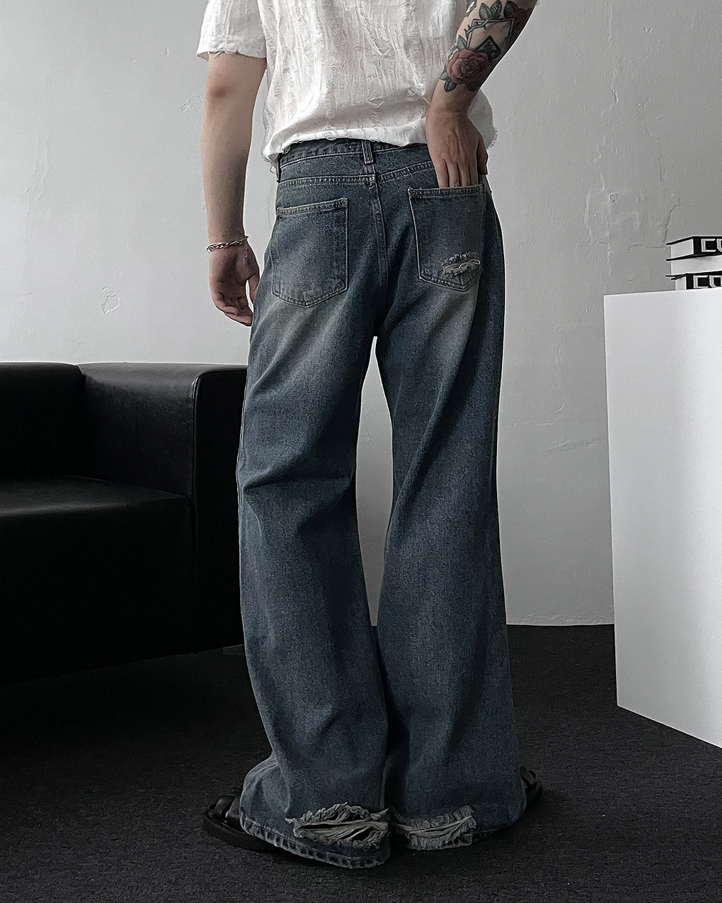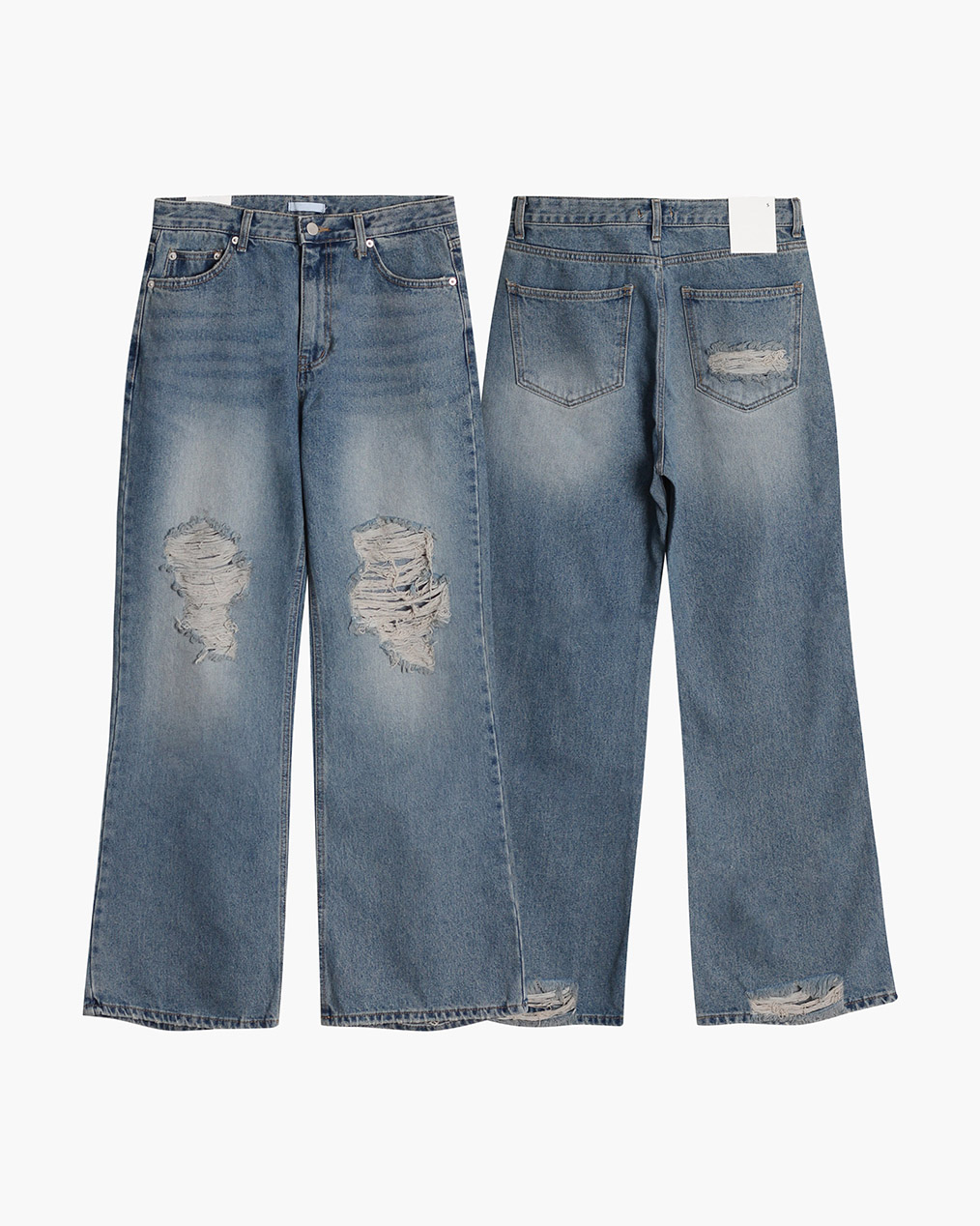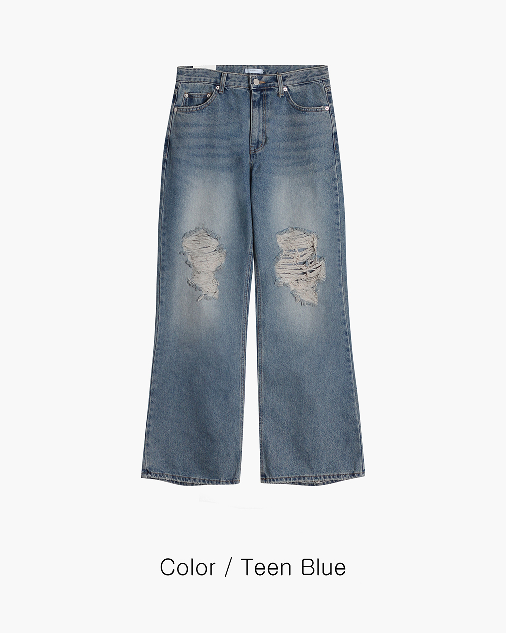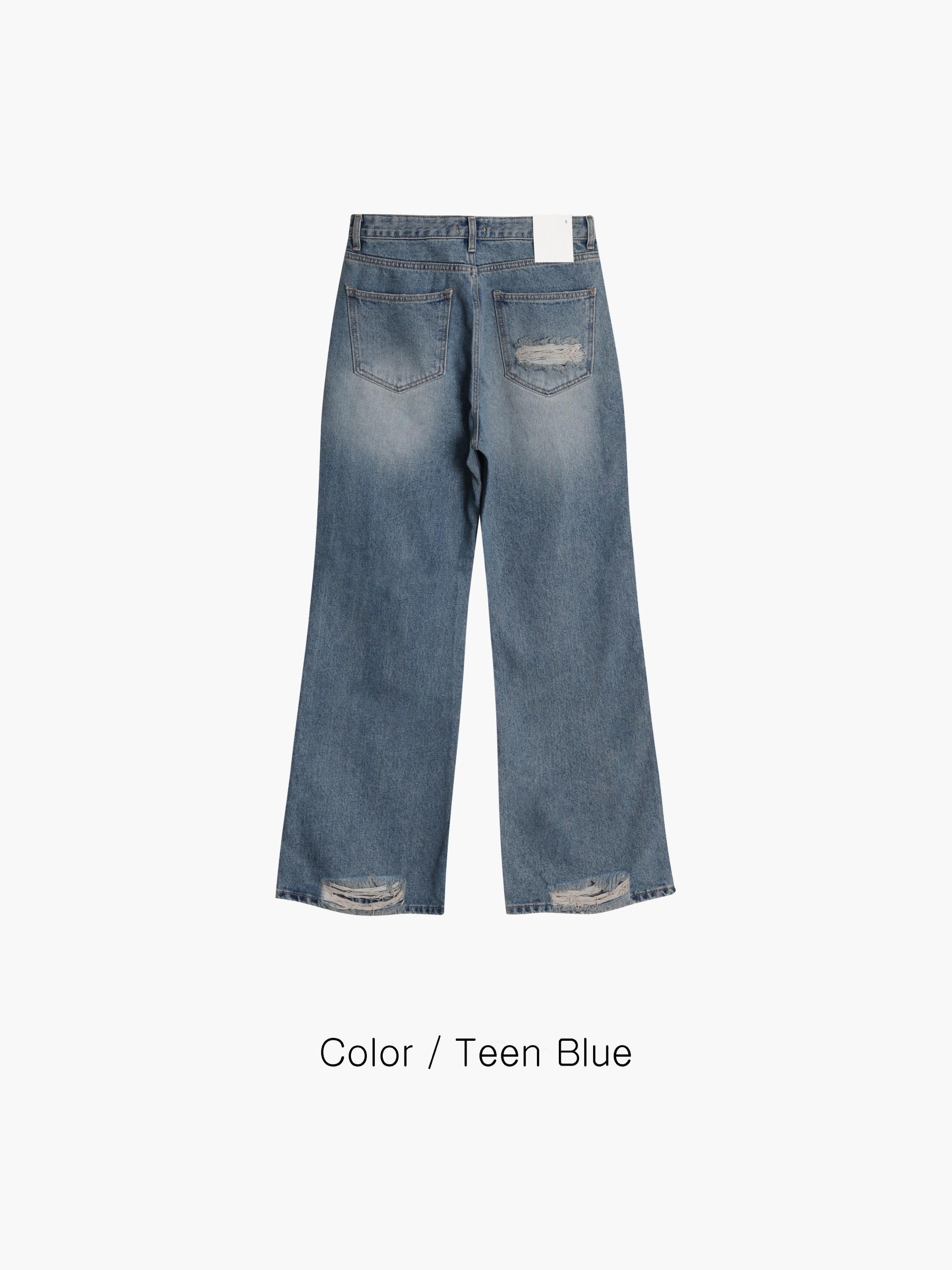 - 전면, 뒷 포켓 & 밑단 하드 데미지 디테일로 유니크한 포인트 완성
