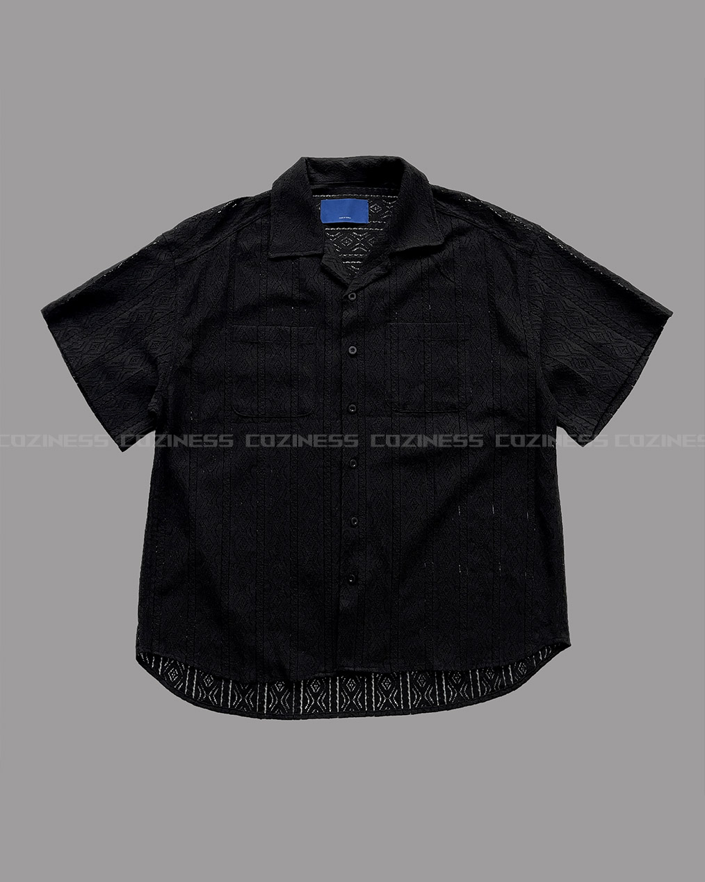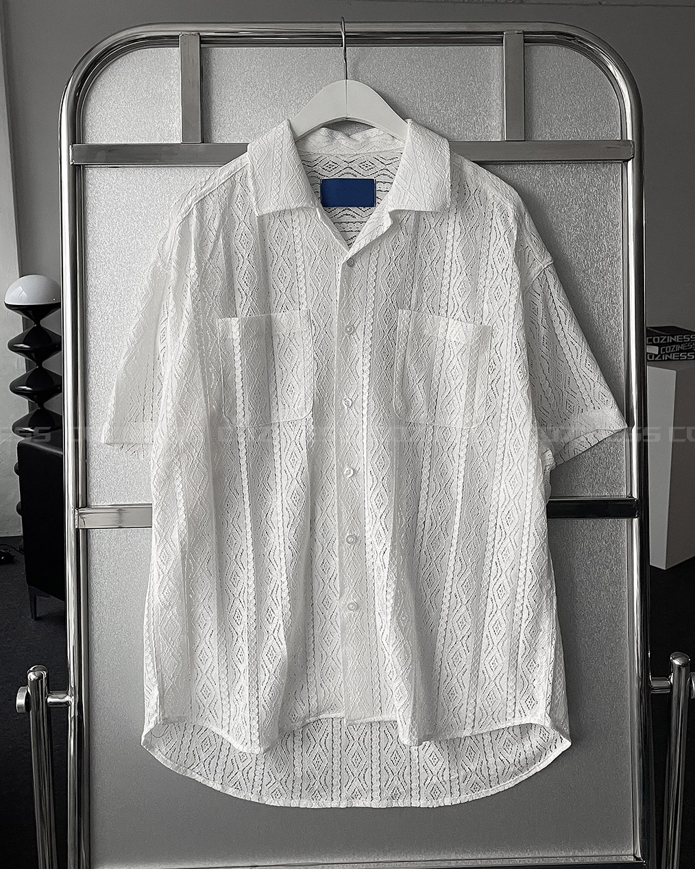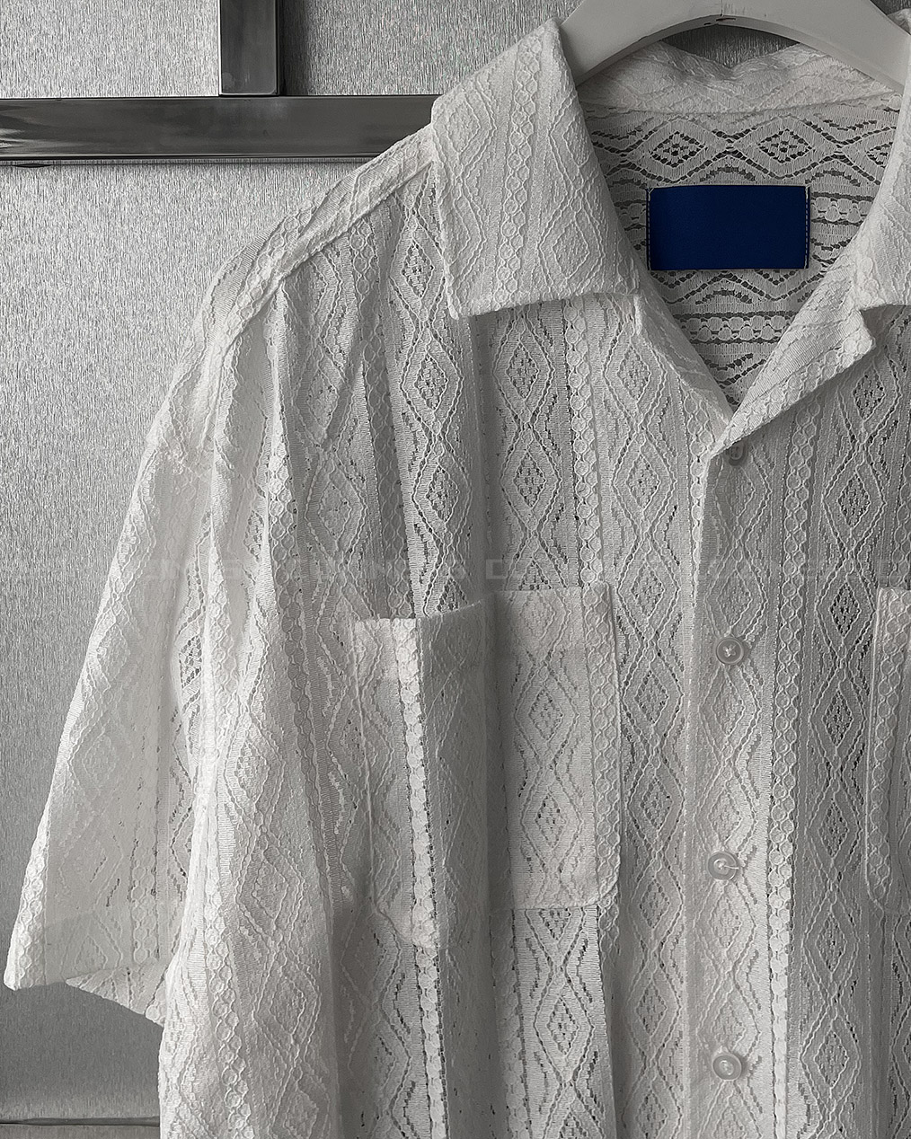 - 얇고 가벼운 레이스 오픈 카라 반팔 셔츠