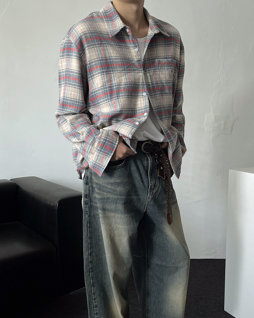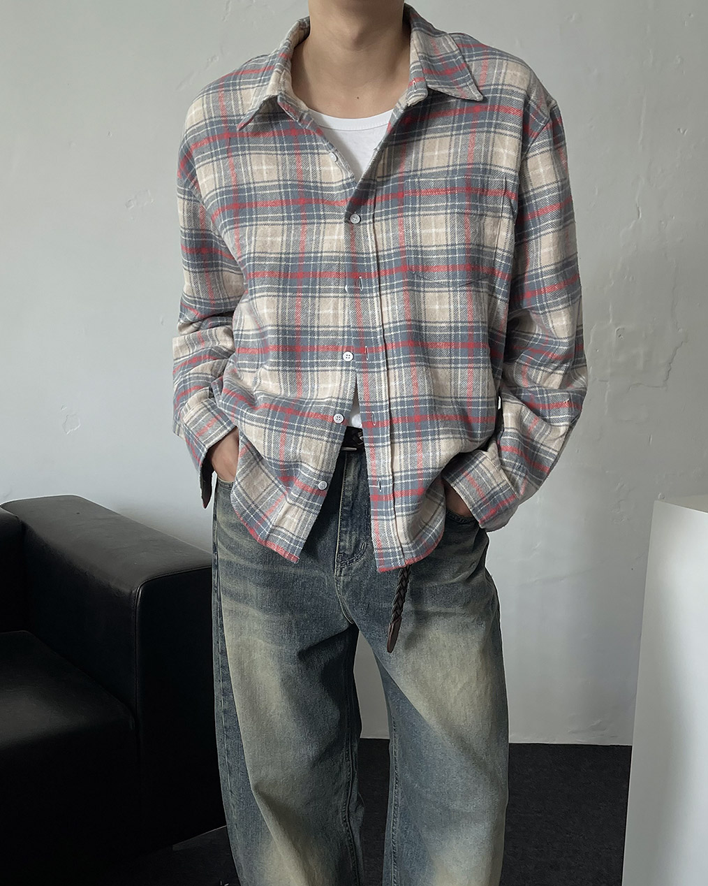 - 빈티지한 무드의 타탄체크 패턴으로 단독 착용만으로도 감성 연출